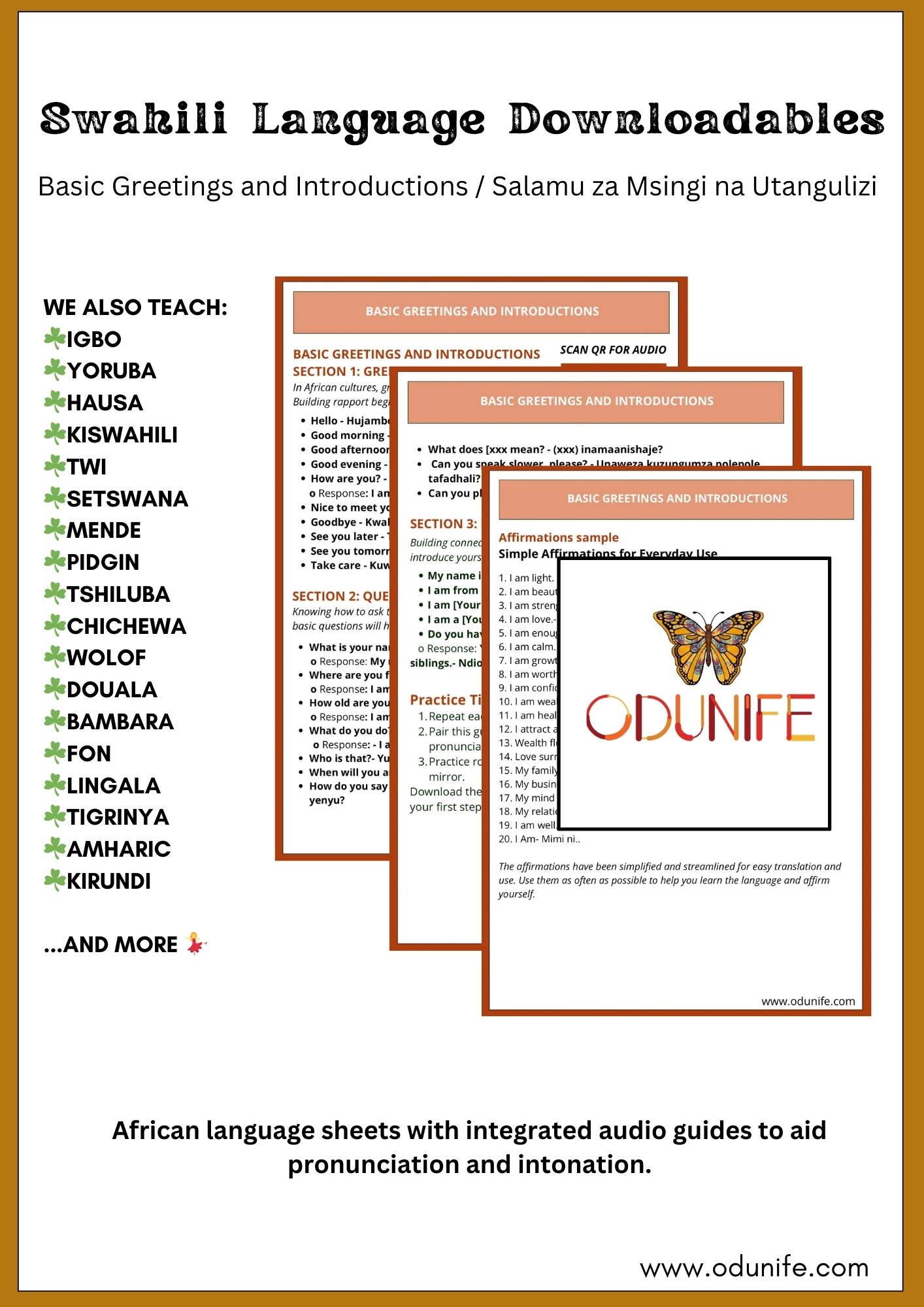 Swahili Language download- Basic greetings and Introductions with Audio!