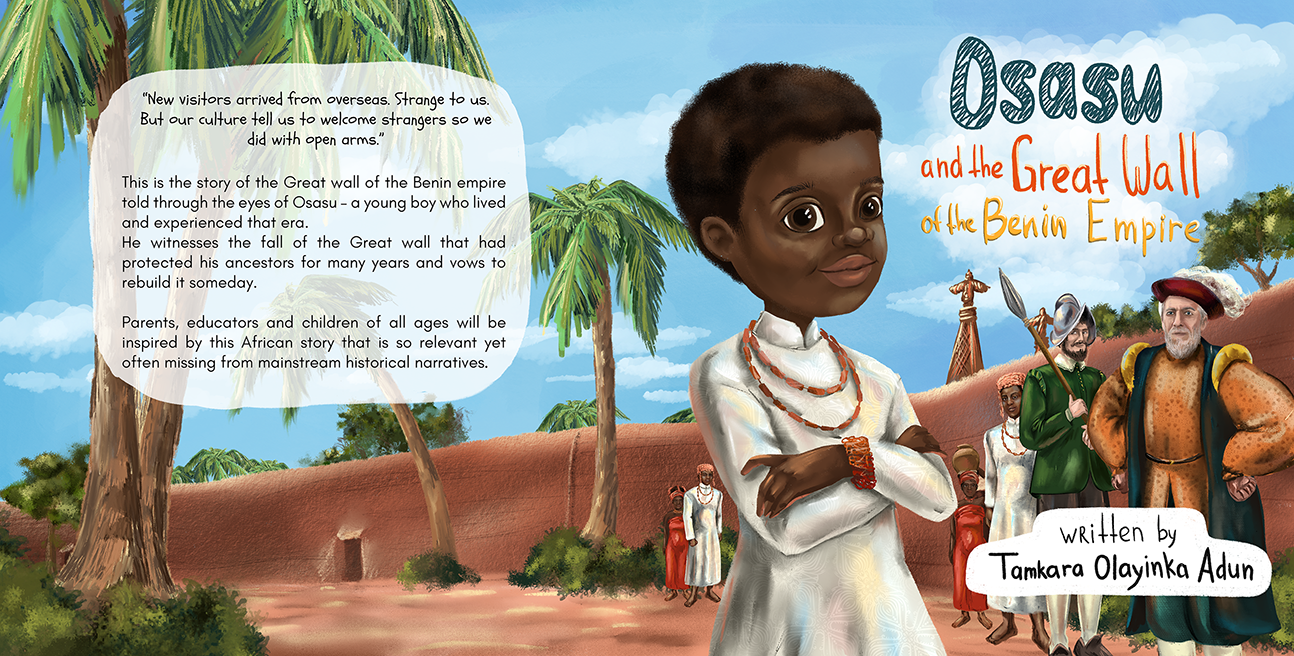 "Osasu & The great wall of the Benin Empire" is told from the point of view of Osasu, a young Edo boy who lived in the ancient Benin Empire and enjoys the comfort and protection of the Great Wall of Benin that was built by his ancestors.